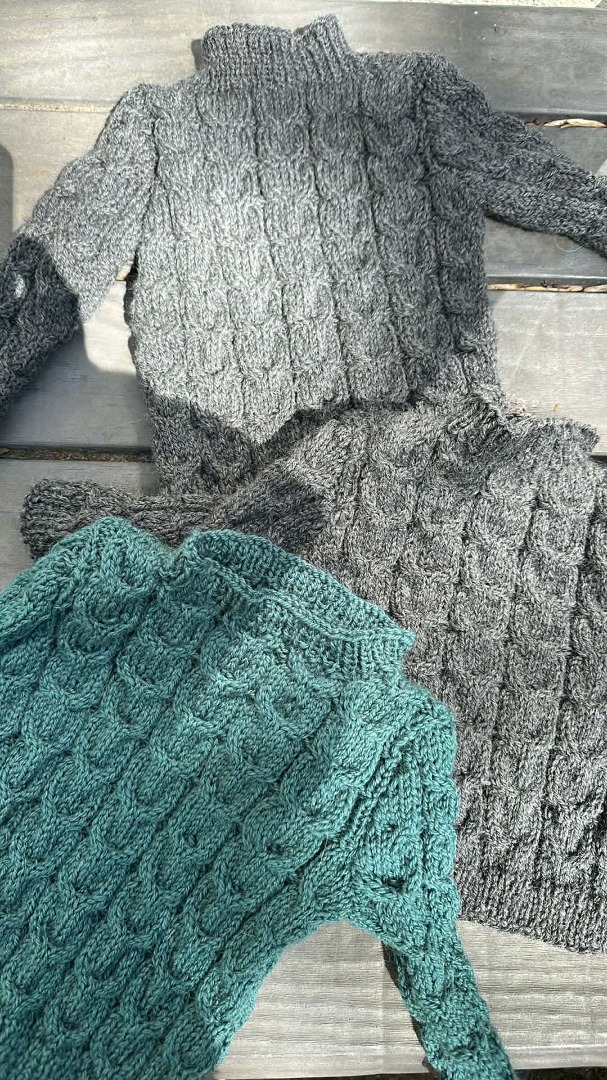 2 grijze en 2 groen/blauwe gebreid van de Corriepol.